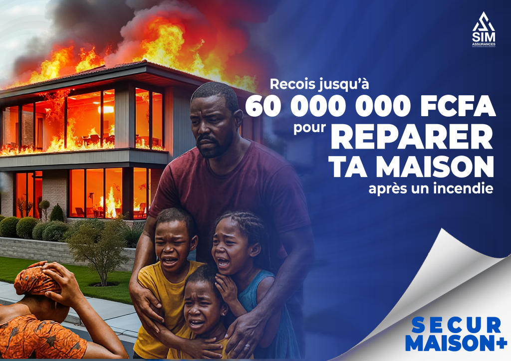 Bénéficiez d’une couverture allant jusqu’à 60 000 000 FCFA pour la réparation de votre maison et le remplacement de son contenu.